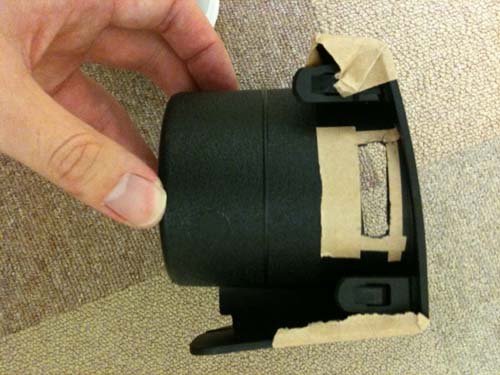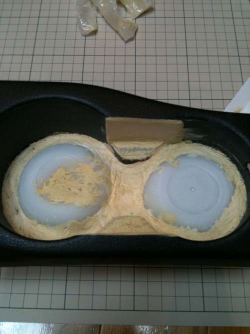 エポキシパテをもりもりします。両側の穴が開いている部分は、アクリル板を切り出し、瞬間接着剤で仮着しておきます。