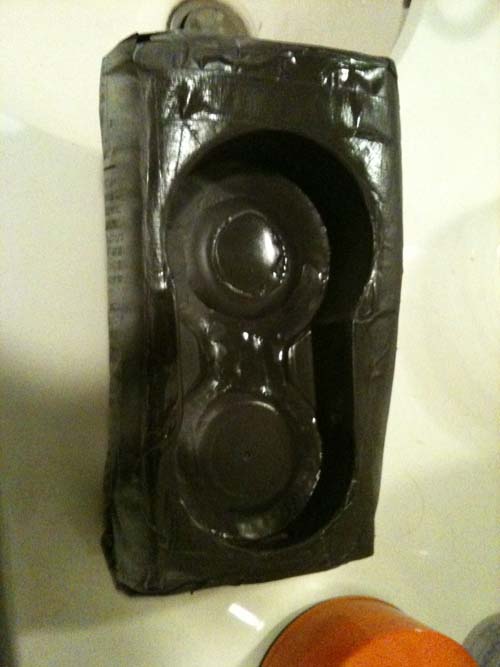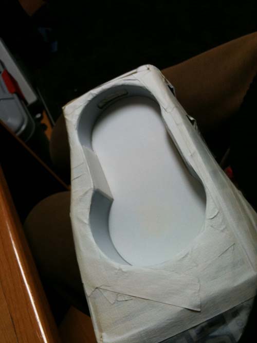 このエポキシパテってヤツは結構やっかいで、盛り上げたりするときには肉やせしにくくよいのですが、何にでもくっつくので、使い捨てのグローブ、ヘラが必要になります。